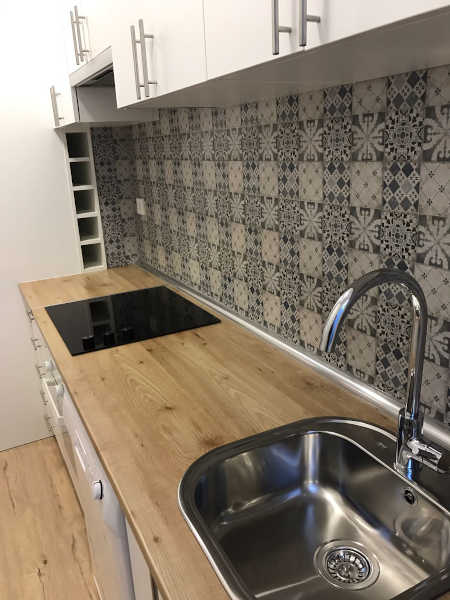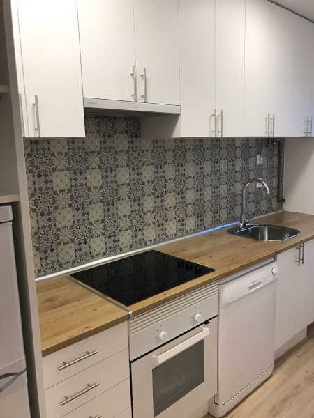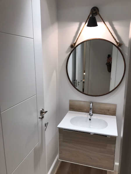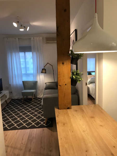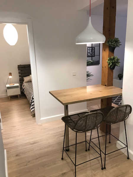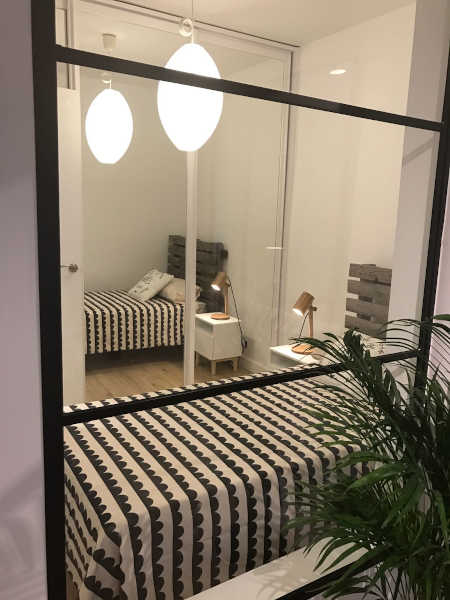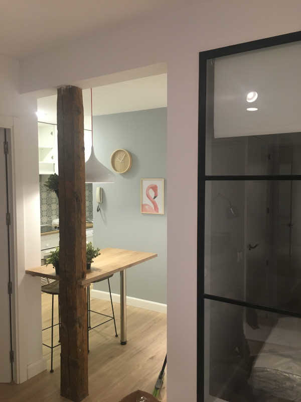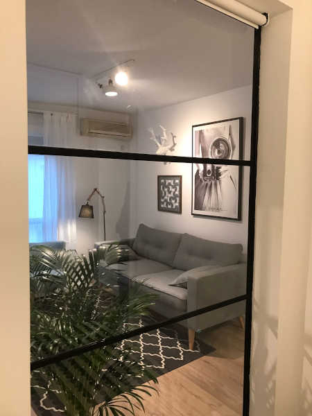 Reforma completa de apartamento completo usando como principal material la madera e instalando separadores de cristal para dar amplitud a los espacios.