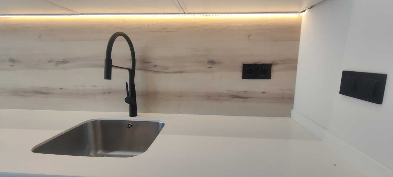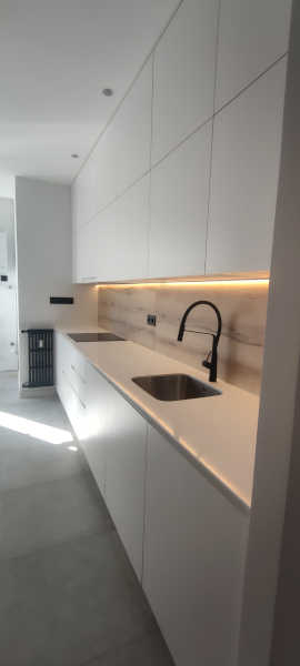 Reformamos completamente este apartamento donde resalta la carpintería en tonos blancos.